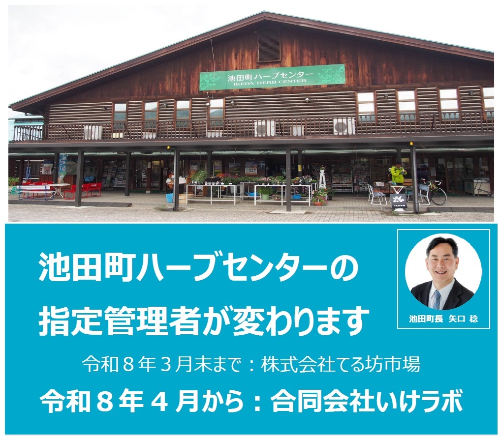 池田町ハーブセンターは、この度の指定管理者交代に伴い、令和8年4月より「合同会社いけラボ」を新たな指定管理者として指定し、施設の管理運営や物品販売などを行うことになりました。
